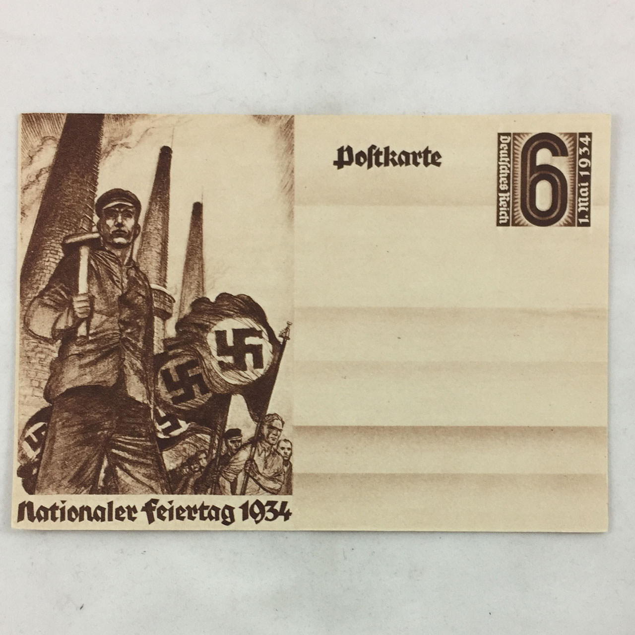 This propaganda postcard was published as a commemorative postcard for the 'Tag der Arbeit' (national labour day) 1934. The card is in unused, good condition.
